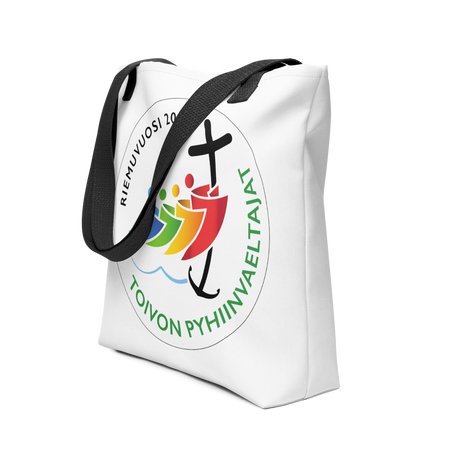 Tämä tilava, kevyt ja vahvatekoinen ostoskassi Riemuvuoden logolla on täydellinen valinta päivittäisiin tarpeisiin. Pitkät, vahvat kahvat tekevät kantamisesta mukavaa, ja kestävärakenteinen kassi sopii niin ostoksille, harrastuksiin kuin pyhiinvaellukselle.